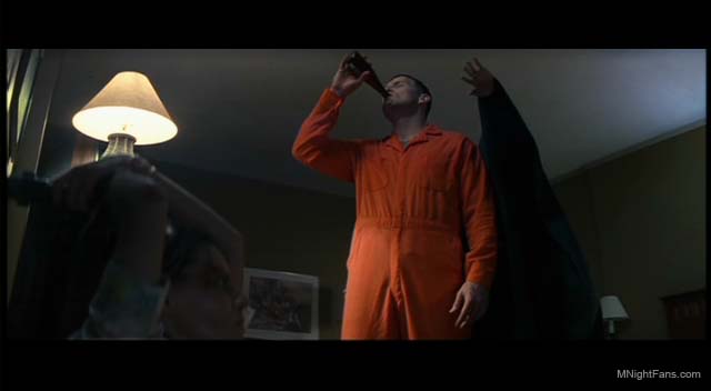 Of course, there is the ORANGE jumpsuit man who David fights (And no, David DOES NOT kill him. The man is still breathing as he is laying there, well after David puts the choke hold on him).